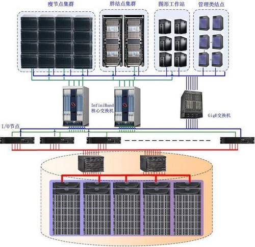 6神威Cluster是在匯集神威MPP機(jī)的技術(shù)優(yōu)點(diǎn)基礎(chǔ)上,專(zhuān)門(mén)為科學(xué)和工程計(jì)算領(lǐng)域設(shè)計(jì)開(kāi)發(fā)的高性能計(jì)算平臺(tái)。在氣候氣象、海洋環(huán)境、數(shù)值風(fēng)洞、碰撞仿真、蛋白質(zhì)折疊、基因研究、新藥研發(fā)、分子動(dòng)力學(xué)模擬、量子化學(xué)計(jì)算、材料科學(xué)、芯片設(shè)計(jì)、動(dòng)漫設(shè)計(jì)、工業(yè)設(shè)計(jì)等方面用途廣泛。神威Cluster系統(tǒng)的通用結(jié)構(gòu)如下圖:
