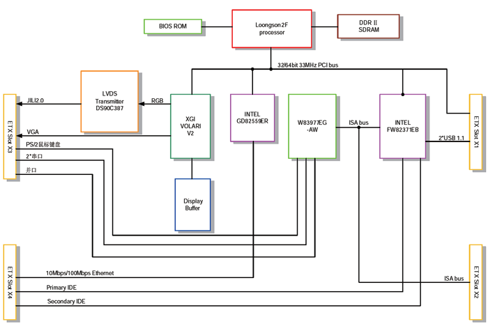 ????? LX-42FA采用低功耗龍芯2F處理器,工作主頻為660~800MHZ,片內(nèi)集成DDR2控制器,板載512~1024MB內(nèi)存.集成XGI V2顯示控制器